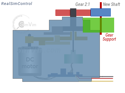 Adding external step-up gear (e.g., 1.5:1 or 2:1 ), this method doesn't require to disassemble the servo, you need to find a couple of suitable gearwheels and make a support constuction for gear. Gear ratio can be from 1.5/1 to 2/1 to extend the servo rotation angle by 90-180°. Do not make the rotation angle of more than 360°.