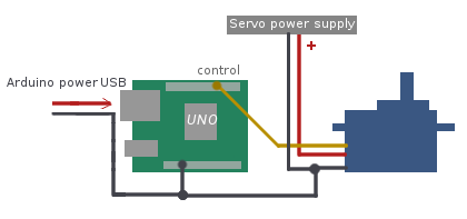 The potentiometer on the shaft and a control circuit allow to monitor the angle of the shaft and turn the motor in the correct direction until the angle is correlated with the pulse width.