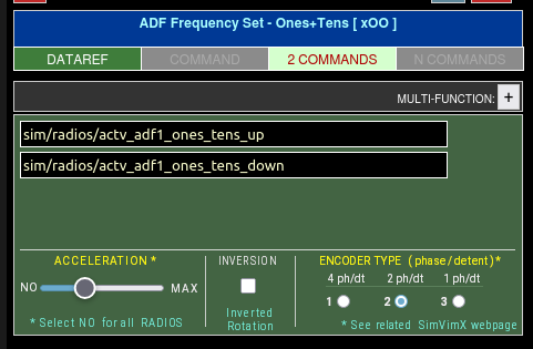 When assigning dataref or commands to the selected encoder in the plugin configuration window, you can also select additional parameters for its correct operation.